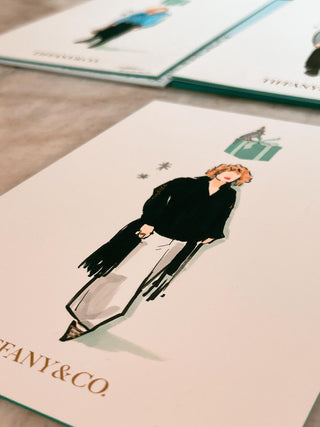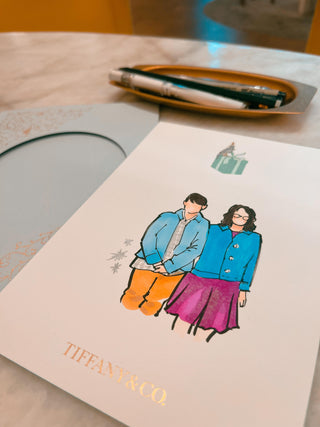 Live painting for Tiffany & Co. , where I painted portraits of clients on postcards for their Christmas campaign. The portraits were done live during an exclusive brand event.